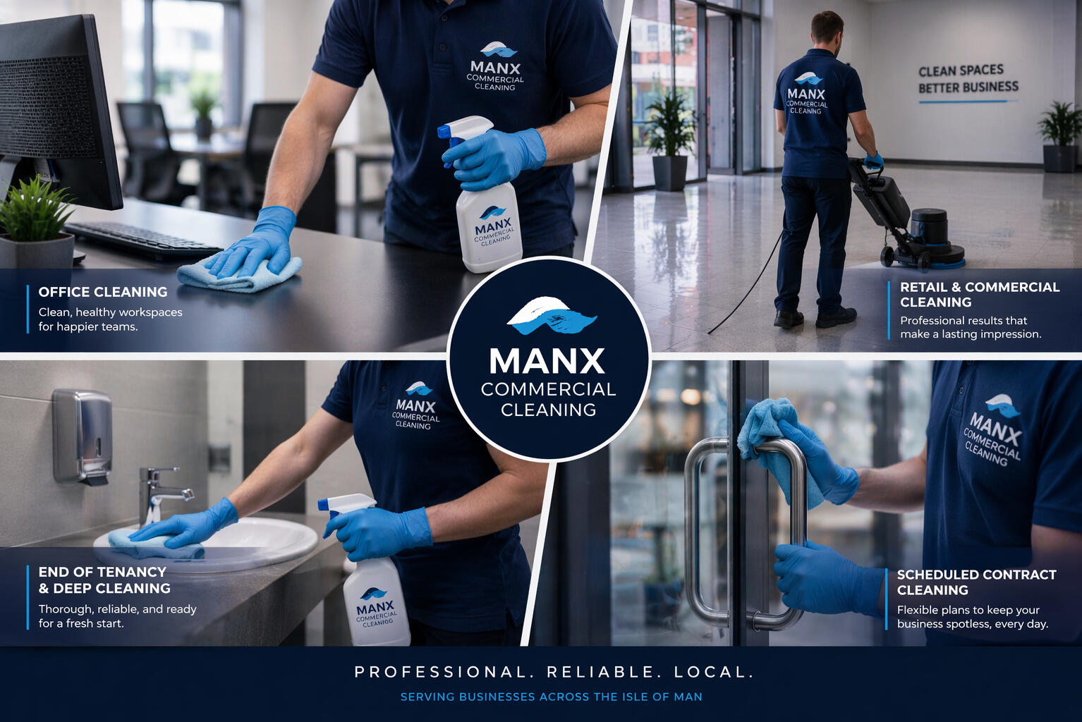 We provide professional cleaning services across the Isle of Man, helping businesses maintain clean, safe, and presentable environments.Our focus is simple — reliability, quality, and flexibility for every client we work with.